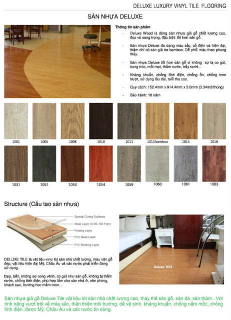 Sàn nhựa giả gỗ Deluxe mang đến cho bạn nhiều chọn lựa về quy cách, độ dày, lớp phủ...theo yêu cầu của Quý khách hàng.